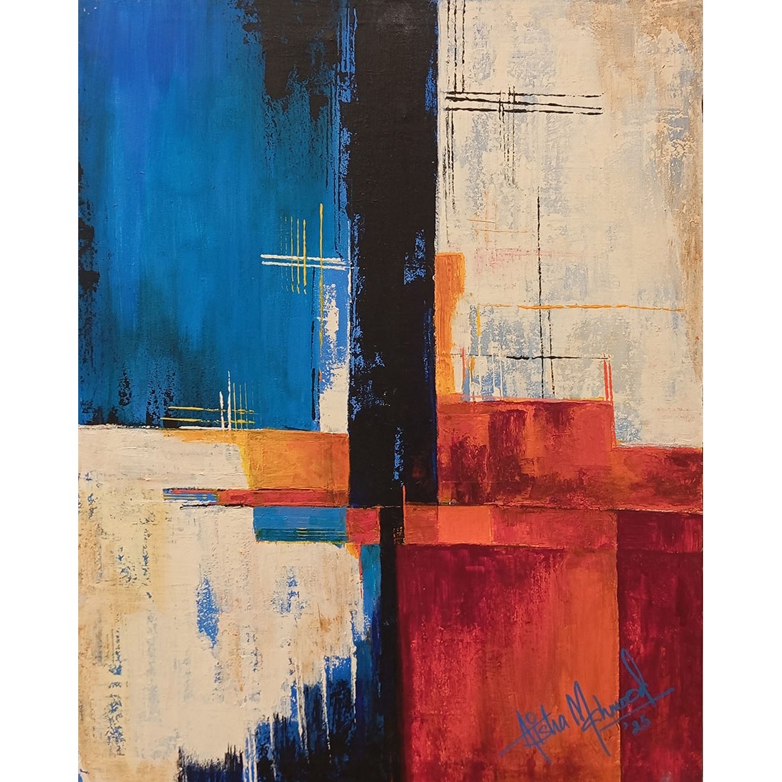 Aisha Mahmood is a Karachi-based acrylic painter who draws inspiration from the beauty and chaos of her city. Her body of work covers various genres, including abstract, landscape, and calligraphy. She has a bachelor's degree in Textile Design from the Royal Melbourne Institute of Technology and has worked as a chief textile designer and general manager, marketing, at Gul Ahmed Textile Mills. As an entrepreneur, she runs her own clothing brand, Aisha Alam Boutique.