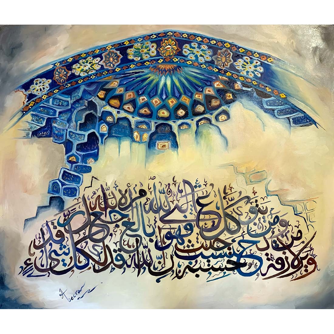 Abeera Atique, 24 x 24 Inch, Oil on Canvas, Calligraphy Painting, AC-ABAT-001