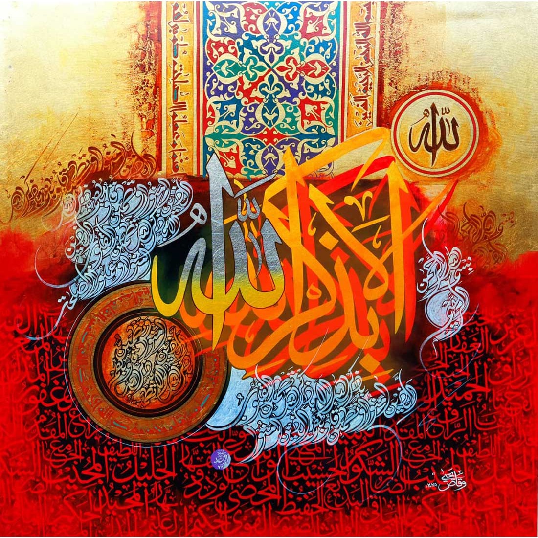 Waqas Yahya, 36 x 36 Inch, Oil on Canvas, Calligraphy Painting, AC-WQYH-033