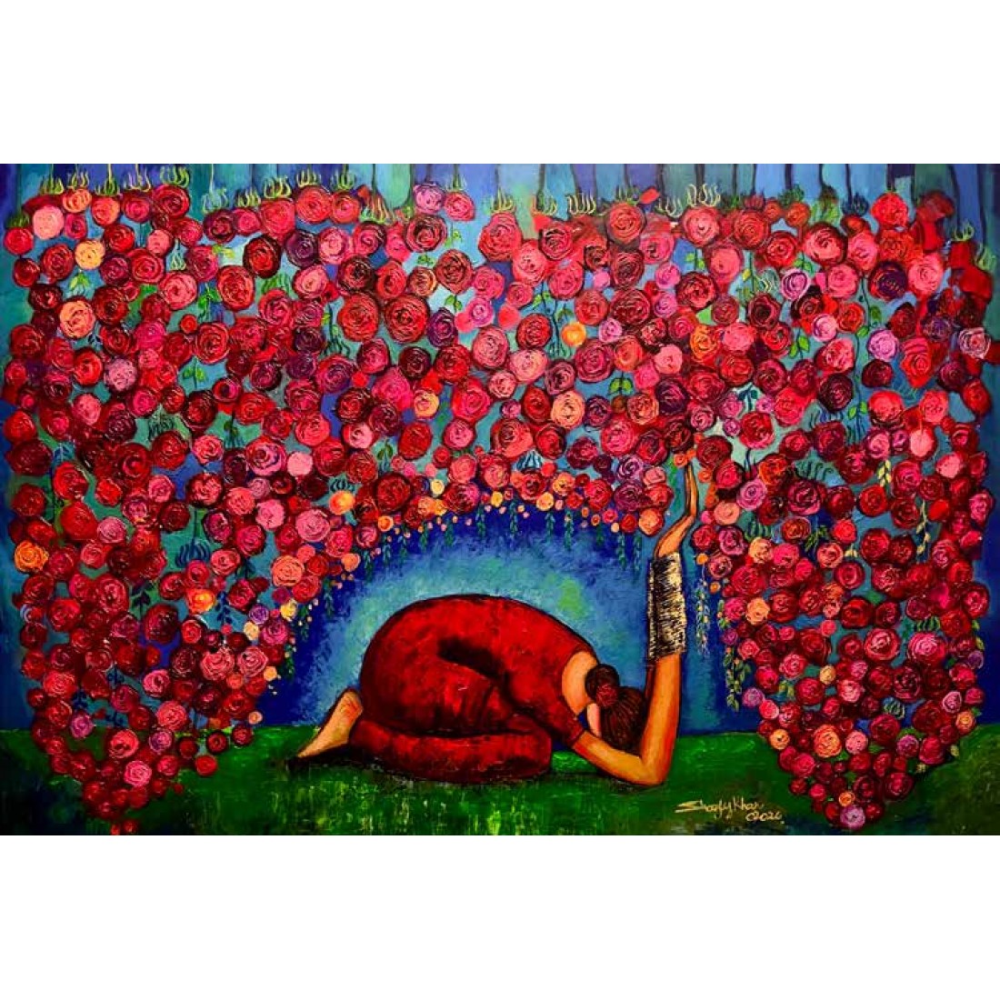 being therapeutic at the same time, bringing joy and inner peace in their lives, as art does the exact thing for me!  I meditate through my paintings and hope to bring some peace and positivity through them to my viewers distracting them from the harsh realities of life. I know life is not a bed of roses. In this turbulent world, I choose and feel the need to intentionally paint the world on a positive note