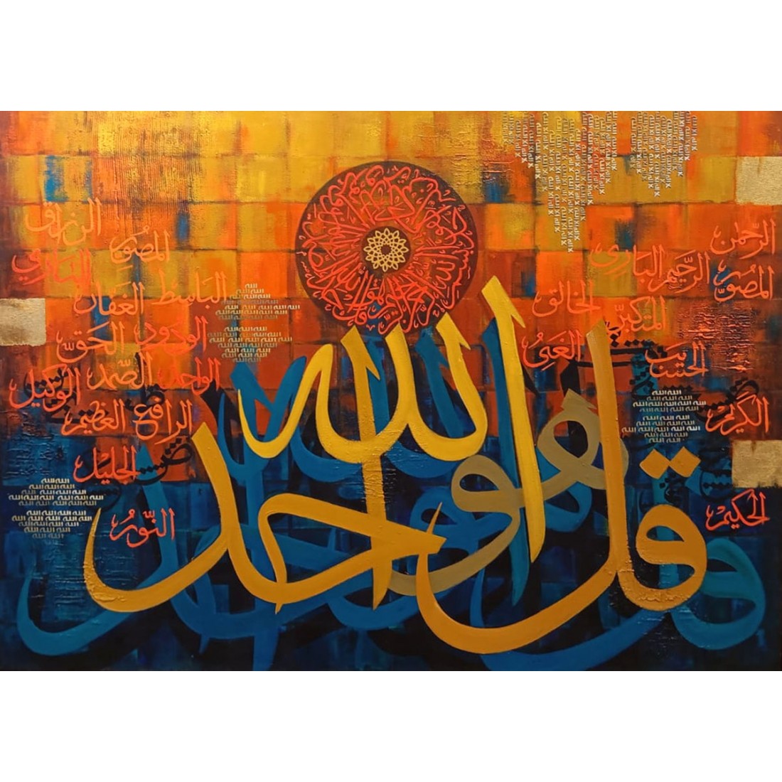 In my work, I expressed my intellectual longing for creative ideas through my love for traditional Islamic khat and my own contemporary painting style. It explores the harmony between the colors, fluid lines, dots, textures, patterns, letters and words together to inspire a meaning worth imagining. The striking bold colors and subtle use of contrast accentuates the brush strokes to encapsulate all that is good about the contemporary Islamic Calligraphy. As contemporary styles and techniques continue to develop, I am breathing into a rich and ever-evolving art.