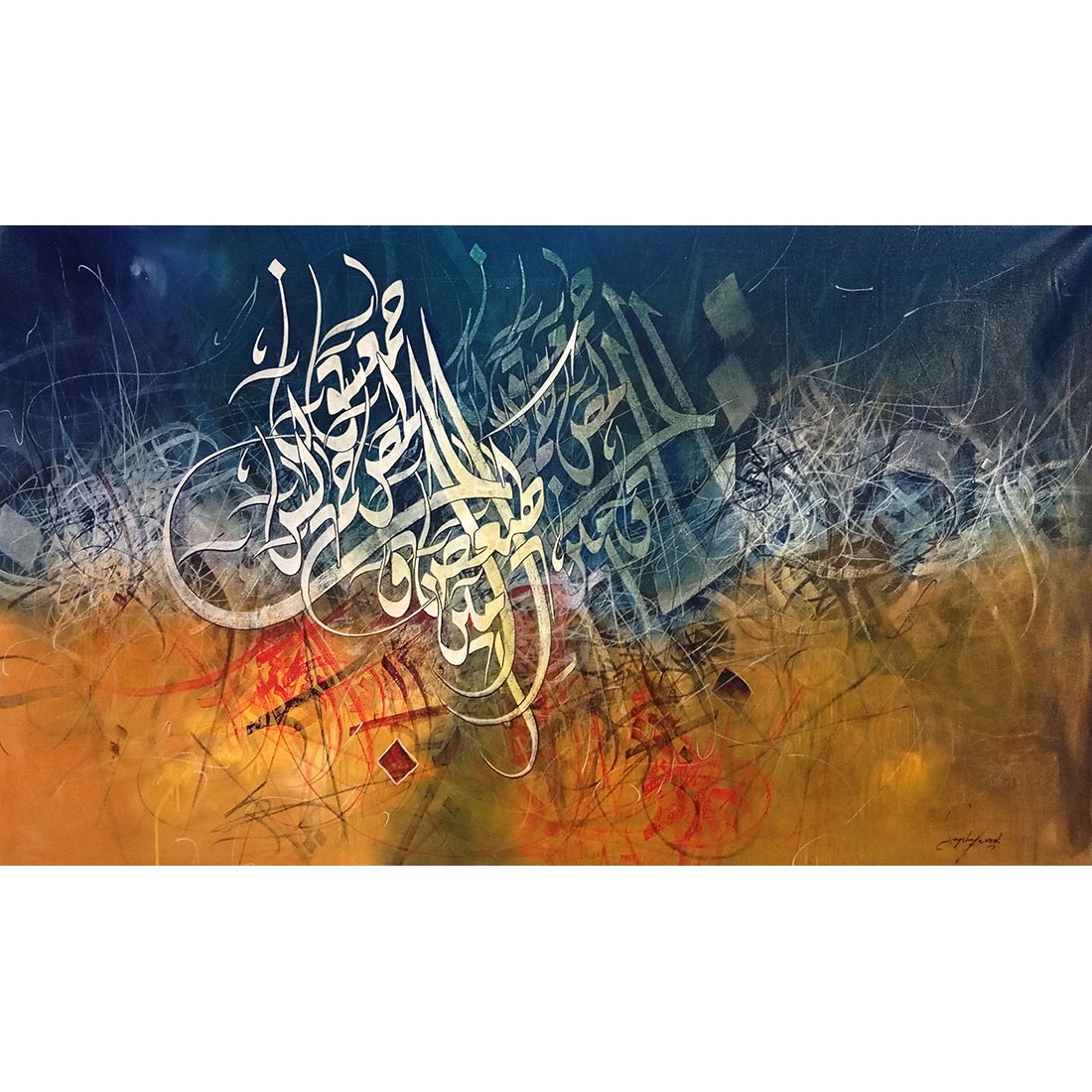 Saqib Javed, 30 x 52 inch, Acrylic on Canvas, Calligraphy Painting, AC-SBJ-026