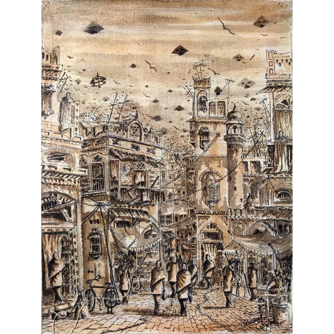 Ghazanfar Iqbal, 17 x 22 inch, Mixed Media On Canvas, Cityscape Painting, AC-GIQ-002