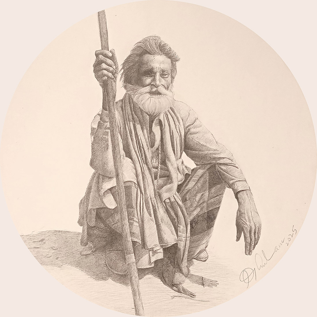 Ghulam Markhat, 10 x 10 inch, Graphite on Paper, Figurative Painting, AC-GHM-001