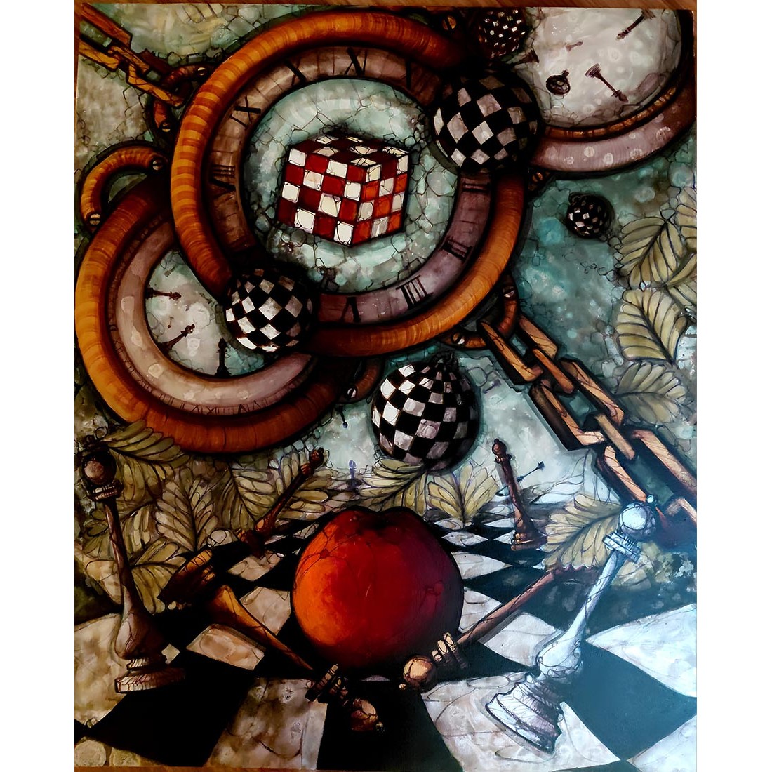 “I have long been associated with art, specifically the subject of time and its complexities. My work is deeply inspired by semi realistic surrealism and stylized form of expressionism, often including colours of metallic nature, along with brighter strokes representing my perception of life, this with the hope that my work relates to and touches the lives of those who admire it. The objects in my paintings i.e. pawns, chessboards and chairs, are all symbols for the ultimate game of existence and the endless connections between times past and of future; between places distant, yet so close.”  -  Shazia Salman
