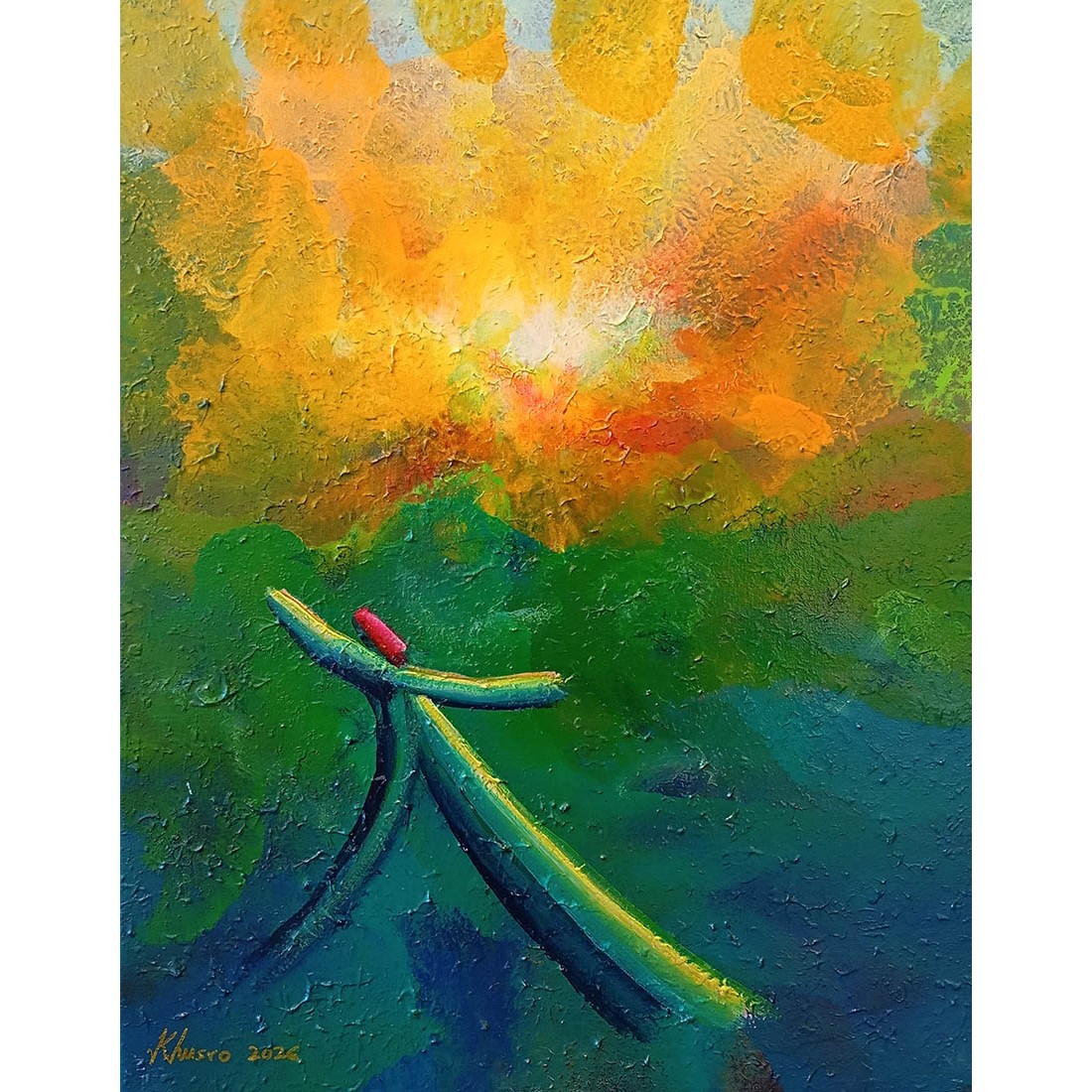 Khusro works in different styles and themes, from landscapes and cityscapes to abstractions, and now, after a spiritual awakening from his visit to Turkey, onwards, Sufism has become one of his main theme.