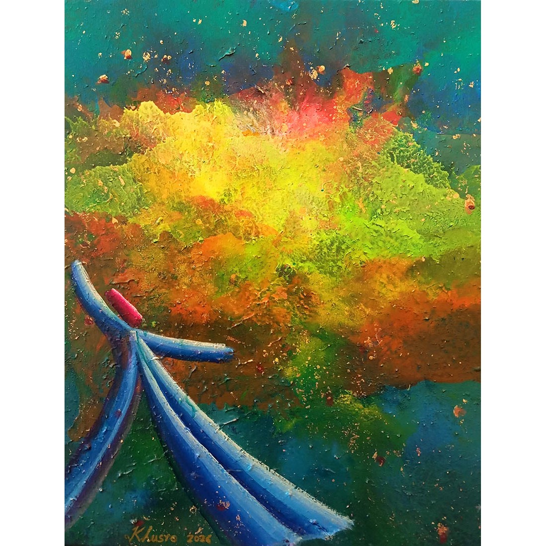 Khusro works in different styles and themes, from landscapes and cityscapes to abstractions, and now, after a spiritual awakening from his visit to Turkey, onwards, Sufism has become one of his main theme.