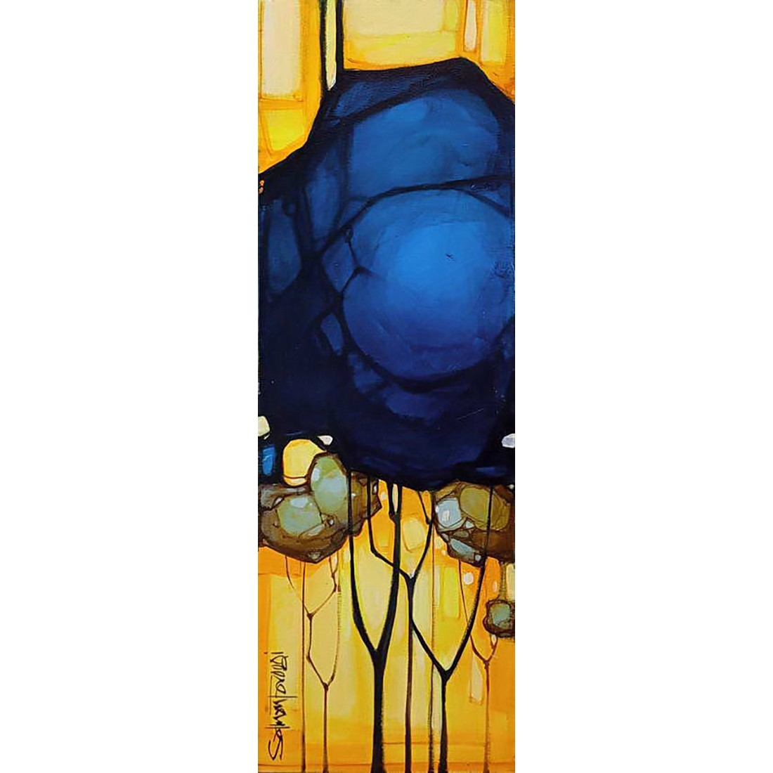 Salman’s work exudes a refreshing energy, his forms are skillfully stylized and simplified into spontaneously created geometric configurations, where smooth lines overlap and traverse the canvases with ease. The paintings are well balanced and the energy floating around captivates the eye while rich color palette and bold compositions help create brilliant effects making the paintings aesthetically pleasing.